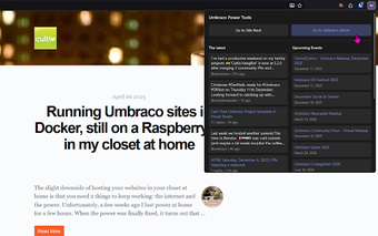 Umbraco Power Tools는 Umbraco 개발자를 위해 설계된 무료 Chrome 추가 기능으로, 필수 리소스에 빠르게 접근하여 생산성을 향상시킵니다. 이 도구는 사용자가 Umbraco 관리 패널과 사이트 루트 간에 쉽게 전환할 수 있도록 하여 더 원활한 탐색과 작업 흐름을 가능하게 합니다. 직관적인 인터페이스를 통해 개발자는 여러 탭 간에 전환할 필요 없이 작업을 더 효율적으로 관리할 수 있습니다.